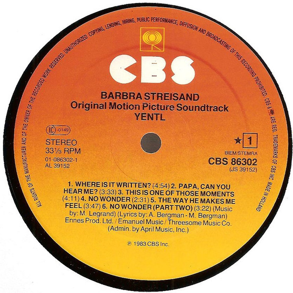 Yentl – Original Motion Picture Soundtrack – LP Brugt (1983)