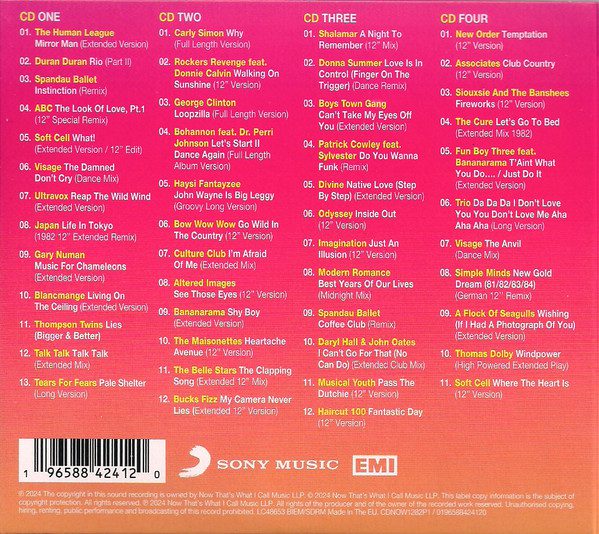 CD4 fuldender denne trackliste med alternative/indie rock-favoritter fra New Order, Associates, Siouxsie And The Banshees og The Cure, og der er stadig plads til synth-drevne hits fra Simple Minds med den tyske 12″ remix af “New Gold Dream (81 / 82 / 83 / 84)” og A Flock Of Seagulls med “Wishing (If I Had A Photograph of You)”. samt store numre fra Trio og en anden optræden fra Visage, før denne fremragende samling slutter med Thomas Dolby og Soft Cell.