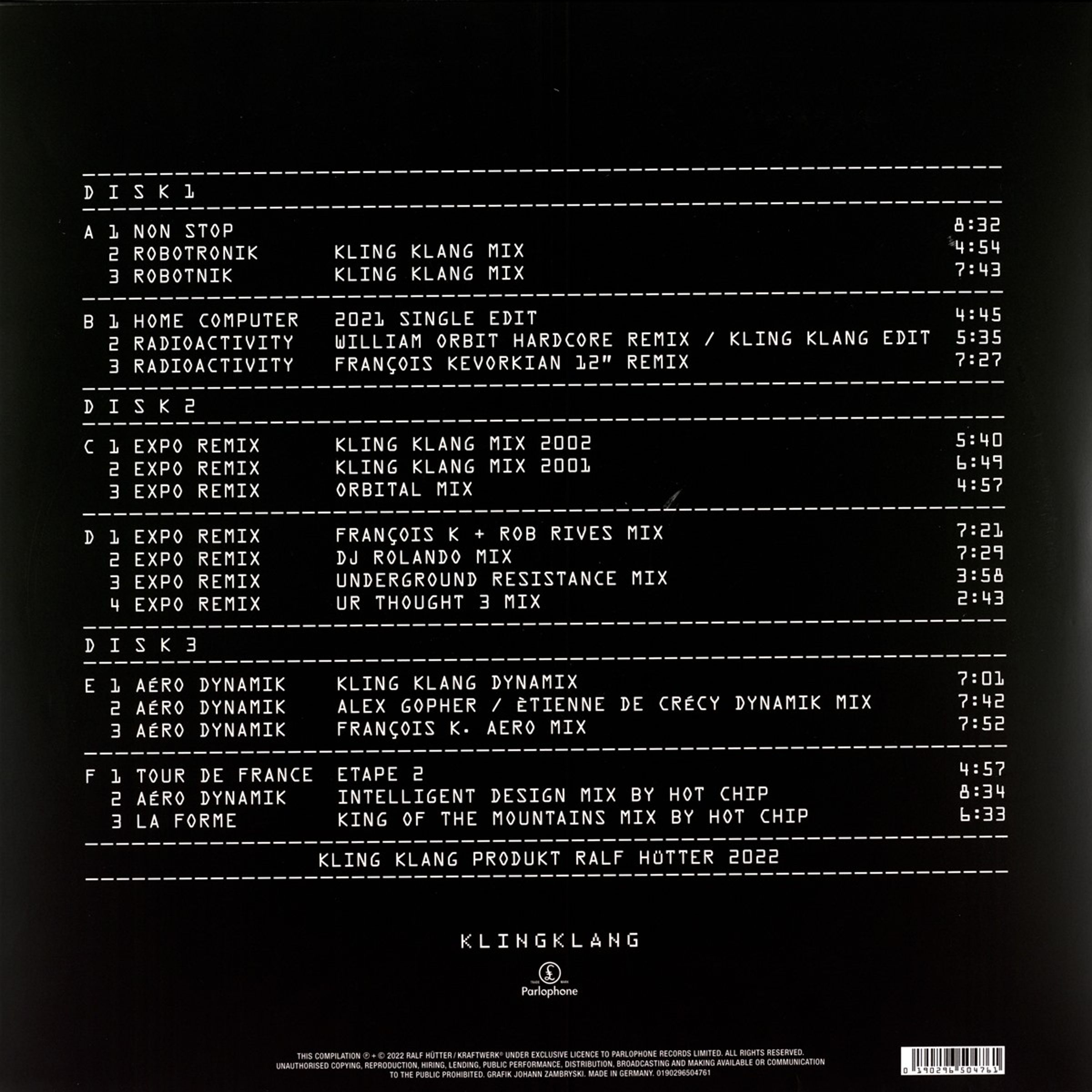 Både fans og samlere vil være glade for inkluderingen af William Orbit Hardcore Mix af “Radioactivity”, som tidligere kun var tilgængelig på US 12″ fra 1991. Andre bemærkelsesværdige tilføjelser inkluderer DJ Rolandos rework af “Expo 2000,” Francois K’s & Étienne de Crécys remixes af “Aéro Dynamik,” Kraftwerks egen remix af “The Robots” (“Robotnik”) og Hot Chips udvidede mix af “La Forme.” Selvom alle de udvalgte remixes er tilgængelige på streamingtjenester, har fysiske kopier længe været udsolgt, så denne triple vinyl- og dobbelt-CD-udgivelse er et velkomment supplement til Kraftwerk-kataloget og, vigtigst af alt, et must-have for electro-DJs.